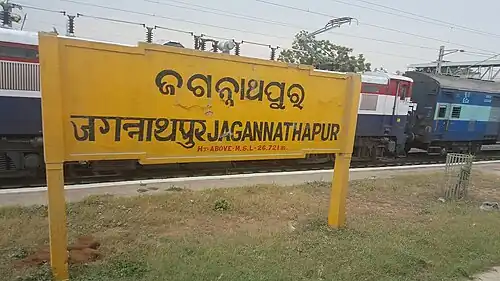 Jagannathapur railway station is a railway station on Khurda Road–Visakhapatnam section, part of the Howrah–Chennai main line under Khurda Road railway division of East Coast Railway zone.[1] It is situated at Ghadaghadapalli, Narasimhapura in Ganjam district in the Indian state of Odisha.[2]