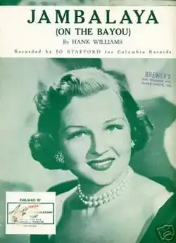 Released in July 1952, it reached number one on the U.S. country charts for fourteen non-consecutive weeks.[7] Williams performed "Jambalaya" at the Louisiana Hayride as part of his "homecoming" in fall, 1952 (after being fired from the Grand Ole Opry). A live recording released as part of a series of Hayride performances includes outbursts of applause.[8] Another unreleased version is included in the 2017 CD set, At the Louisiana Hayride Tonight.[9]