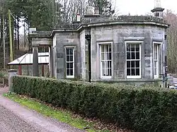In the 1820s the Balfours employed the architect Robert Smirke, designer of the British Museum, to build a large classical mansion at Whittingehame,[1] along with a stable block and gate lodges.[15] They equipped their home with French furniture and Sèvres china.[1] Built of pale cullalo stone, the house was expanded and altered in 1827 to the designs of William Burn, which were not entirely successful. Colin McWilliam and Christopher Wilson describe them as having changed "a dry composition into a boring one".[15]