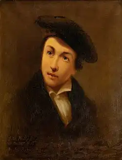 His first portrait was of Mayor William H. Baker (1813–1872),[4] which led to a meeting with Governor Conrad Baker, the Mayor's brother. This resulted in a commission to paint official portraits of six Indiana Governors; three posthumous (Jonathan Jennings, Ratliff Boon and James Whitcomb), three from life (Baker, Paris Dunning and Oliver Morton).