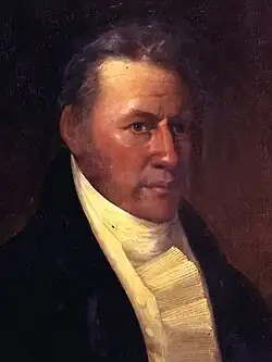 Born to an affluent Irish Episcopalian slaveholder of the same name in Danville, Kentucky, James G. Birney lost his mother, Martha Reed, when he was three.[2] He and his sister were raised by their widowed aunt, who had come over from Ireland[2] at the request of his father to look after the two. He was influenced by his aunt's opposition to slavery; she refused to own slaves.[2] By 1795, his father's two sisters and their families had migrated from Ireland, settling on farms near his home. Most of his mother's relatives had also migrated nearby, settling in other areas of Mercer County, Kentucky. Growing up, he saw the issue of slavery from a variety of perspectives. Though his father fought to prevent their state of Kentucky from joining the Union as a slave state, when the effort failed, he decided that until the legislature abolished slavery from the state as a whole, a person could own slaves as long as he treated them humanely. Other members of Birney's family felt a personal moral responsibility and refused to own slaves. For his own part, Birney agreed with his father and received his first slave, Michael, a boy his own age, at age six.[2] However, for much of his youth and education, he was under the influence of teachers and friends with strong anti-slavery views. For example, he attended several sermons given by a Baptist abolitionist by the name of David Barrow in his youth, which he later recalled with fondness.