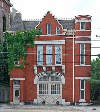 It is a two-story red brick building with terra cotta, stone, and metal details.[2]