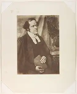 James Gibson was a Free church polemic, was born at Crieff, Perthshire, on 31 January 1799. He was the fourth son of Robert Gibson, who was a carrier from Crieff. His mother was Isabella Kemp.[4] He entered the university of Glasgow in his twelfth year. He graduated with an M.A. in 1817. Towards the close of his preparatory course he became tutor in a Lanarkshire family, and in 1820 was licensed to preach by the presbytery of Hamilton. He afterwards accepted a situation as tutor in a Roxburghshire family, near Jedburgh, where he remained more than three years. In 1825 he became travelling companion to Captain Elliot, a cousin to the Earl of Minto. They went to Portugal and resided a considerable time in Lisbon.[5][6]