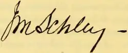 1. ^ a b c d e "Col James M. Schley..." Catoctin Clarion. November 22, 1883. p. 2. Retrieved March 20, 2024 – via Newspapers.com.Open access icon