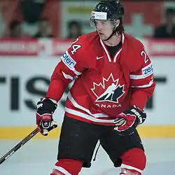 On January 7, 2014, Benn was named to the Canadian Olympic hockey team for the 2014 Winter Olympics in Sochi despite not being invited to the orientation camp during the summer of 2013.[32] In his first game as an Olympian, Benn scored the game-winning goal in Canada's first game against Norway in a 3–1 victory.[33] He scored the only goal in a 1–0 win against the United States in the semi-final, to advance Canada to the gold medal game, where they eventually beat Sweden 3–0.