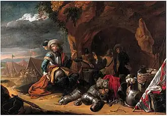 - ^ Jan Baptist Tyssens (circa 1665-1723/4), An officer smoking a pipe by a grotto, with armour, a drum and a flag in the foreground at Christie's