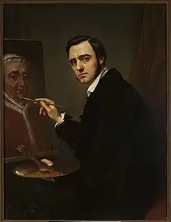 Kaniewski was born in Krasiłów, Krasyliv in Podolia, Ukraine. He was educated in the Liceum Krzemienieckie in Krzemieniec, where he received his first lessons in drawing and painting from Józef Pitschmann. Between 1827 and 1833 he studied in the Imperial Academy of Arts in St. Petersburg. After graduating with the title "free artist" (Polish: wolny artysta), he traveled to Rome thanks to a government grant, arriving in November 1833, via Dresden, Vienna, Bologna and Florence. In Rome he found fame, thanks to his portrait of Pope Gregory XVI, commissioned by Tsar Nicholas I, for which he was awarded the Order of the Golden Spur and was elected a member of the Accademia Virtuosi of the Pantheon.[1] While in Rome he also painted Gaetano Moroni.