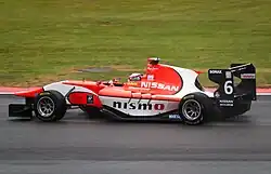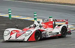 In 2015, Mardenborough was selected as one of the drivers for Nissan Motorsports' entry into the top LMP1 class of the FIA World Endurance Championship (WEC), which includes the 24 Hours of Le Mans. He also continued racing in GP3, switching to Carlin for the 2015 season.[40] Nissan entered the WEC with an unconventional front-engined car, named the GT-R LM Nismo. The team missed the first two races of the season while trying to improve the car, before making their debut at Le Mans.[41] The GT-R LM Nismo proved highly uncompetitive during the race and Mardenborough's No. 23 car broke down terminally with an hour remaining, but he was consistently the quickest of the three drivers in his car.[15][42] Nissan withdrew from the remainder of the season and eventually cancelled the programme at the end of the year.[43] In GP3, he claimed two podiums and scored points on six occasions to finish ninth overall ahead of future IndyCar champion Álex Palou.[44] He missed four races during the season as he took part in a round of the GP2 Series as a substitute for another driver at Carlin and had a testing commitment at the end of the year.[45][46]