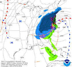 ![]() The intensifying extratropical cyclone responsible for the blizzard over the Northeastern United States, at 2:15 a.m. EST (07:15 UTC) on January 23, 2016 | |