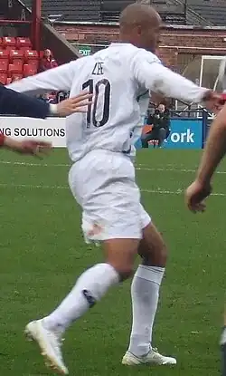 After that, he played for Peterborough United (2000–2003), Falkirk (2003–2004), Boston United (2004–2006). In January 2006, Lee joined Northampton Town on a free transfer.[2] He was part of the Northampton side that won promotion from League Two, appearing 11 times for the Cobblers and scoring one goal against Notts County.[3] However, he was released at the end of the season and subsequently joined Aldershot Town. His stay at the Shots was a brief one, and in June 2006 he moved to Notts County, and was team captain for the 2007–08 season. It was announced on BBC East Midlands Today, during a feature presented by the player, that he would not be retained by the club for the 2008–09 campaign.[4]