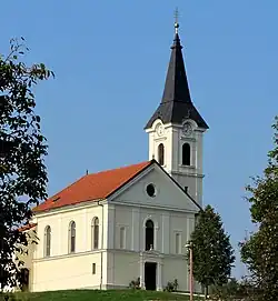 • The village core is a typical example of a clustered village, consisting of Saint Martin's Chapel in the cemetery, a school, old two-story farmhouses with barns dating from the 19th century, and Saint Anne's Church.[8]