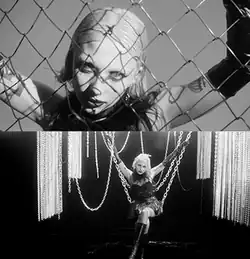 A music video for "Jealousy" was directed by the visual artist Vasilisa Forbes (who also directed the video for the band's earlier single, "Lies"), and it was released on 9 May 2022.[8][9] The video, which is filmed in black and white, features the band performing the song against a minimalist background. Baron-Gracie is also shown singing from behind a chain-link fence, and while hanging from a chain swing.[10] In an interview with MTV News, Baron-Gracie described Forbes's treatment of the song as "one of [her] favorite videos" that the band has made, and she likened its visual aesthetic to "a Helmet Lang or Calvin Klein advert."[11]