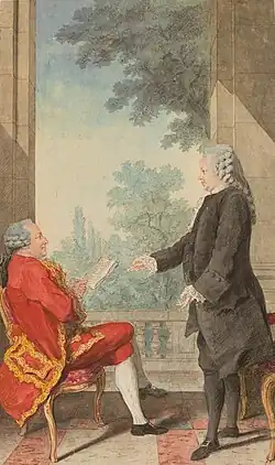 A drawing by Louis Carrogis Carmontelle shows him seated, in red, conversing with his young nephew, Jean-Baptiste-Suzanne d'Albertas, whom he often entertained at Sainte-Assise.[2]