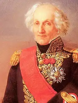 In May 1808, Willaumez was appointed to command a nine-ship, three-frigate and three-corvette squadron.[34] It departed on 21 February 1809, with orders to make its junction with the division of Lorient that was blockaded in its harbour, attach these ships, attack the British squadron blockading Rochefort, attach the Rochefort squadron under Admiral Jacques Bergeret[35] and, by then totaling 18 ships, sail to the Caribbean to rescue Martinique and Guadeloupe.[34]