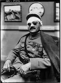 At the outset of World War I, in August 1914, he volunteered for France and was sent to the front as a private. He was wounded at Charleroi and promoted to lieutenant. In October 1915 he was again wounded, at the battle of Artois, and further wounds in the same battle left him blind. He was left for four days, thought dead, then was taken as prisoner to Germany. He was eventually exchanged and returned to France through Switzerland.[2][3]