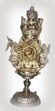 The jewel of his Golden Fleece is inserted into the Grand Ostensoir (Monstrance) of Saint Martin Church in Ham-sur-Heure.
