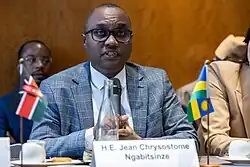 Jean Chrysostome Ngabitsinze (born 23 September 1977), is a Rwandan economist and politician, currently is the Group Director General of African Risk Capacity Group and UN Assistant Secretary General appointed on 29 April 2025 and assumed office on 11th July 2025. He served as the Rwandan Minister of Trade and Industry, from July 2022 until August 2024.[1][2] Prior to his appointment, he was Minister of State in MINAGRI, since March 2020.[3][4] In addition, Jean Chrysostome is the Secretary General of Social Democratic Party (PSD), since 2015.[5] Jean Chrysostome holds a PhD in Agricultural Economics from University of Milan in Italy, and he is a professor of agriculture economics at University of Rwanda, since 2009.[6]