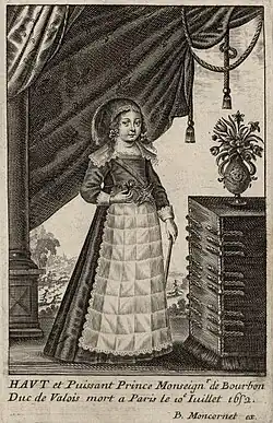 He was given the title of Duke of Valois, a title which was from his father's appanage from Louis XIII.[1]