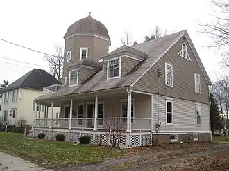 Jennings-Marvin House is a historic home located at Dryden in Tompkins County, New York. It was built in 1897 and is a 2-story, three-bay, frame Queen Anne–style structure with Colonial Revival and Shingle style detailing. The most notable feature is the 2+1⁄2-story octagonal tower with its wooden shingle sheathing and oval windows.[2]