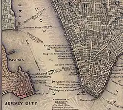 In 1661, Communipaw Ferry began operation as the first ferry service between the village of Communipaw (Jersey City) and New Amsterdam (Manhattan) shortly after the village of Bergen was established.[64]
