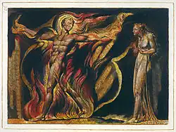 Jerusalem: The Emanation of the Giant Albion (1804–1820, with additions made even later) is a prophetic book by English poet William Blake. Jerusalem is the last, longest and greatest in scope of Blake's works. Etched in handwriting, accompanied by small sketches, marginal figures and huge full-plate illustrations, it has been described as "visionary theatre". The poet himself believed it was his masterpiece and it has been said that "of all Blake's illuminated epics, this is by far the most public and accessible".[2] Nonetheless, only six copies were printed in Blake's lifetime and the book, like all of Blake's prophetic works, was all but ignored by his contemporaries.