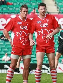 White (left) with fellow Sydney ruckman Darren Jolly in 2009