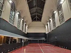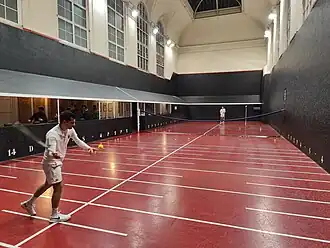 In 1927, in an attempt to broaden the membership and appeal to British and American visiting players, the club renovated the northern court into four squash courts, one offset slightly due to the presence of the tambour on the old real tennis court.[9] The remaining space has since been converted into a gym and additional changing facilities. The addition of the squash courts triggered the club to add "et rackets" to its name.[10]