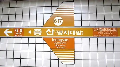 2. ^ "증산(명지대앞)역" (in Korean). 서울지명사전. Retrieved 2019-08-26.