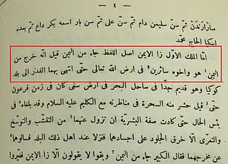 Page from the Tarikh es-Sudan which describes Za/Zuwa Alyaman coming from Yemen and settling in Kukiya.