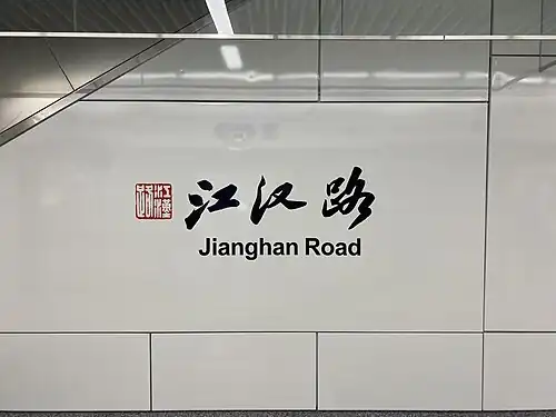 Jianghan Road (Chinese: 江汉路) is a metro station on Line 6 of the Hangzhou Metro in China. Opened on 30 December 2020, it is located near the Powerlong Binjiang Mall in the Binjiang District of Hangzhou, the capital city of Zhejiang province.[1]
