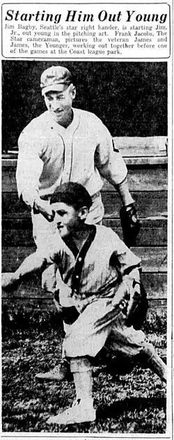 His son, Jim Bagby Jr., was also a major leaguer who played for the Red Sox, Indians and Pirates. The Bagbys became the first father and son to pitch in the World Series when Jim Jr. appeared for the 1946 Red Sox.