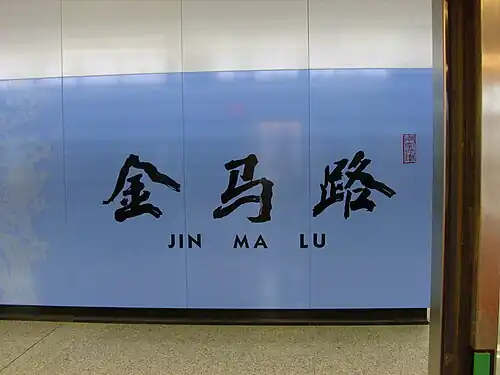 Jinmalu station (simplified Chinese: 金马路站; traditional Chinese: 金馬路站; pinyin: Jīnmǎlù Zhàn; lit. 'Jinma Road station') is an interchange station between Line 2 and Line 4 of the Nanjing Metro.[1][2] It is located to the north of Jinma Road and south of Benma Road (奔马路), parallel to Shishi Road (石狮路) in Qixia District. It started operations on 28 May 2010 along with the rest of Line 2;[3][4] the interchange with Line 4 opened on 18 January 2017 along with the rest of that line.[5][6]