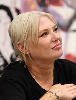 On March 30, 2017, DC announced that her artwork would be used as the basis for a new series of statues in their Cover Girls line, making her the first female designer of the line. The first four statues were released in 2018,[27] depicting the characters Harley Quinn, Batgirl, Supergirl, Mera.[28] Subsequent statues were released of Catwoman,[29] Black Canary,[30][31] Wonder Woman,[32] and Huntress.[33]