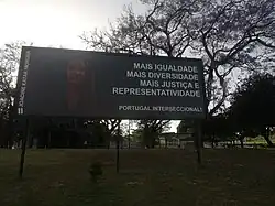 Billboard promoting Moreira in Lisbon — "more equality, more diversity, more justice and representativeness; Intersectional Portugal!"