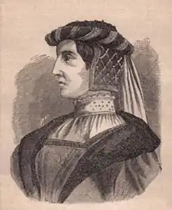 Alfonso died suddenly at the age of fourteen in July 1468.[23][24] His claim as heir to the throne of Castile was inherited by his sister (Joanna's half-aunt), Isabella.[25][26][c] However, support for the rebels had begun to wane, and Isabella preferred a negotiated settlement to continuing the war.[27] In September 1468, she met with her elder half-brother Henry at Toros de Guisando and they reached a compromise known as the Treaty of the Bulls of Guisando. The treaty stipulated that the war would stop, King Henry would name Isabella his heir presumptive instead of Joanna, and Isabella would not marry without her half-brother's consent, but he would not be able to force her to marry against her will.[26][28] Henry also promised to obtain a divorce from Queen Joan. Because of Henry's affection for the Infanta Joanna, there were concerns about his actual willingness to relinquish her rights and he was accused of intending to evade the terms of the compromise.[29]