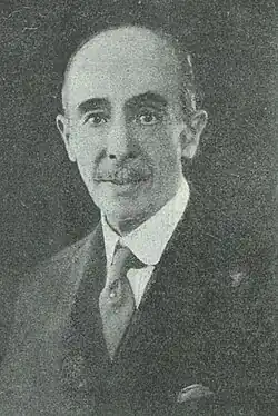 He was a member of the board of directors of Sociedad Española de Amigos del Arte and director of the Arte Español review as well as writing several articles for it.[2] After curating several highly successful exhibitions for the association,[3] his best-known project began in 1918, when Spain's Ministry of Public Works commissioned the Society to restore the Moncloa Palace. In collaboration with the garden designer Javier Winthuysen Losada, Ezquerra del Bayo curated the palace's artworks and furnishing, restoring it to its original neoclassical appearance and reopening on 20 June 1929.[4]