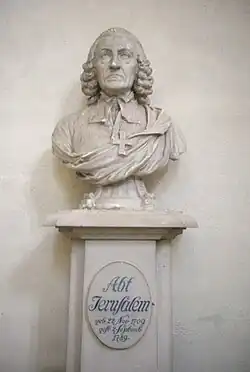 Johann Friedrich Wilhelm Jerusalem (22 November 1709 - 2 September 1789) was a German Lutheran theologian during the Age of Enlightenment. He was also known as "Abt Jerusalem".
