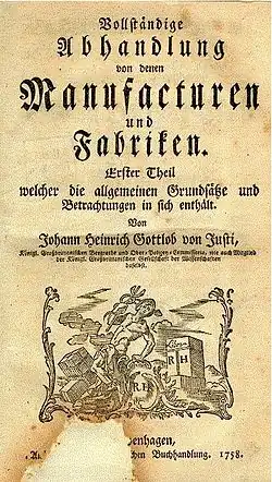 1. ^ Jürgen Georg Backhaus, The Beginnings of Political Economy: Johann Heinrich Gottlob Von Justi (Springer, 2008: ISBN 0-387-09778-3), p. 20; The Political Economy of J.H.G. Justi by Ulrich Adam, p. 24