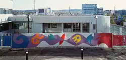 The 14 meter long "Wall of Joy" was designed by Johanna Rytkölä for the square of the police headquarters in the city of Tampere in 1993. The colorful ceramic mural is composed of factory made clinker tiles.[26]