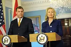 John Russell Baird PC (born May 26, 1969) is a retired Canadian politician. He served as Minister of Foreign Affairs from 2011 to 2015 in the cabinet of Prime Minister Stephen Harper. He had been a member of the federal cabinet, in various positions, since 2006. Previously he was a provincial cabinet minister in Ontario during the governments of Premiers Mike Harris and Ernie Eves. Baird resigned from Harper's cabinet on February 3, 2015,[1] and as a Member of Parliament on March 16, 2015.[2]