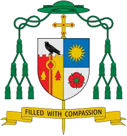 Brungardt chose his episcopal motto, "Filled With Compassion", from the story of the Prodigal Son in the Gospel of Luke. The left side of his coat of arms is the shield of the diocese. The right side is divided into two halves. The superior side features a sun. The lower half features a rose.[4]