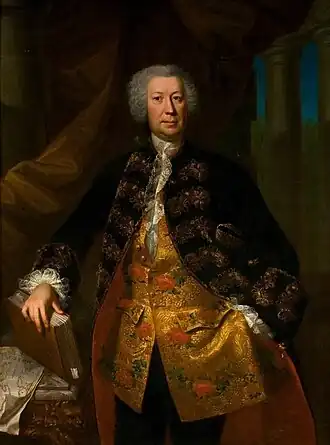 Burnaby was the son of John Burnaby, of Kensington, and his wife Clara Wood.[1] His brother was Sir William Burnaby, 1st Baronet.[2] He served as secretary to James Waldegrave, 1st Earl Waldegrave as Ambassador to Austria and then in France.[3] He was recalled from Stockholm in 1741 and sent to Bern in 1743, where he served as Resident minister to the Swiss cantons until 1750.[4] The ferry Reichenbach-Engehalbinsel was established for Burnaby, who had rented Reichenbach Castle in Zollikofen as his summer residence in 1743.[5] In December 1749, the Bernese authorities presented Burnaby with a golden chain with a Sechzehnerpfennig (coin) as a thank you for his services.[6]