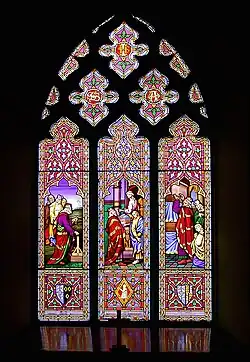 Heraldic window at Calke Abbey Church, showing the arms of the 8th and 9th Crewe baronets