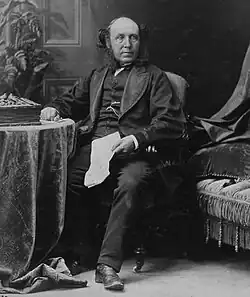 From 1855 to 1860, John McArthur continued to offer his services as a house & commercial painter and decorator and upholsterer.[4] He opened a shop at "70 Grande rue Saint-Jacques" on May 1, 1856. In 1858, he designed the decoration of the Theatre Royal in Montreal.[5] On May 12, 1860, he joined forces with his former glassmaker colleague John C. Spence.[6] During the royal visit of Prince Edward of Wales in 1860, McArthur and Spence designed and decorated at least six of the temporary triumphal arches erected in the city of Montreal,[7] the temporary ballroom building[8] and the residence of the Honorable John Rose which was used as Prince Edward's temporary residence in Montreal.[9]