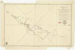 The original survey of the Persian coast is contained in two sheets, that including the south-eastern part of the coast, from the entrance of the Gulf, for a distance of 300 miles (483 km), being on a smaller scale than the other.[4] The other sheet contains the rest of the coast, with the principal channel of the Shatt-ul-Arab as far up as Bussorah, distant about 30 leagues (145 km) from the sea; this place, being at that time the chief seat of commerce and communication between India and the Turkish dominions, besides possessing an establishment of the East India Company, was much frequented by their ships.[4]