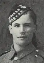In February 1915 he enlisted in the Seaforth Highlanders, joining the regiment's 4th Battalion in France in July 1916.[3][4] He was serving as a lance-corporal at the Third Battle of Ypres when he won the Military Medal for bravery on 20 September 1917 at the Battle of the Menin Road Ridge.[5][6][4]