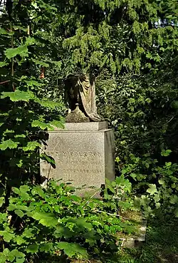 Middleton died of tuberculosis at his home at 29, Surrey Street, Norwich, on 11 November 1856. He was buried in the new cemetery at Earlham.[21][note 9] His obituary in the local Norfolk press noted that "he painted nature just as he found her in the quiet sequestered nooks which abound in this county, and many a spot, otherwise of little note, will live long on the canvas touched by Middleton’s hand".[52] His will, which was proved in Norwich in July 1857, stipulated that Mary Middleton should inherit both the family business and the remaining funds from the estate. From his estate, which was assessed at under £30,000, he provided for his servants, his relatives and to charities, including the Norfolk and Norwich Hospital, which received £100.[53]