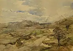 John Middleton was a highly talented watercolourist, who according to Clifford, was the most successful of all the Norwich School artists working in this medium during the late 1840s, with the possible exception of John Sell Cotman. Middleton produced works using clear colours and incisively-outlined forms, boldly using the white of his paper and being, in Clifford's words, "delighted in the potentialities of his medium".[58] The author Robert Brall considers Middleton's best paintings to have an "astonishingly modern" look, in comparison with the elaborate detail found in contemporary works. Brall notes that Middleton's more laboured paintings, painted from 1850, lacked much of the fresh and spontaneous appearance of his earlier works, probably because of a growing public interest in art that contained fine detail and an elaborate 'finished' look'.[59]