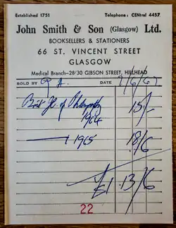 Founded in 1751, it is the oldest bookselling company in the English-speaking world.[1][2] It was based for many years at 57–61 St. Vincent Street in Glasgow, Scotland, which was also its principal retail outlet. A circulating library (established by Smith as Glasgow's first circulating library and Scotland's second overall) ultimately evolved into the academic bookselling arm of the business. From 1751 its chairmen have been three Smiths, three Knoxes and Robert Clow (1934–2022), who became the first chairman in 2000 of the continuing John Smith Group.[3][4]