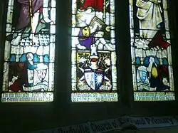 John de Havilland's coat of arms can also be seen at St Peter's Church at Langford Budville (near Wellington) in the County of Somerset, England. They are set in a stained glass window there. His father - John Haviland - has his coat of arms on the left. His mother - Mary von Sonntag - has her coat of arms are on the right. It can be seen in the photograph below that John de Havilland's coat of arms is a combination of the parental coats of arms.